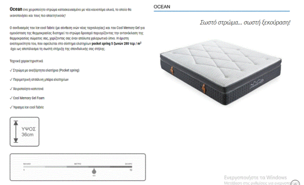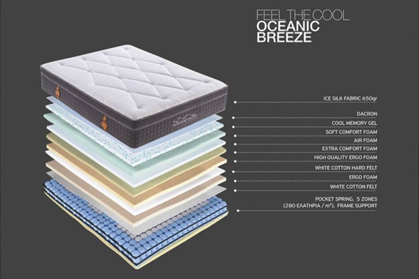 Ο συνδυασμός του Ice cool fabric (με σύνθεση ινών νέας τεχνολογίας) και του Cool Memory Gel για ομοιόσταση της θερμοκρασίας διατηρεί το στρώμα δροσερό περιορίζοντας την αντανάκλαση της θερμοκρασίας σώματος σας, χαρίζοντας σας έναν απόλυτα χαλαρωτικό ύπνο. Η άριστη ανατομικότητα του, που οφείλεται στο σύστημα ελατηρίων pocket spring 5 ζωνών 280 τεμ / m2 έχει ως αποτέλεσμα τη σωστή στήριξη της σπονδυλικής σας στήλης.