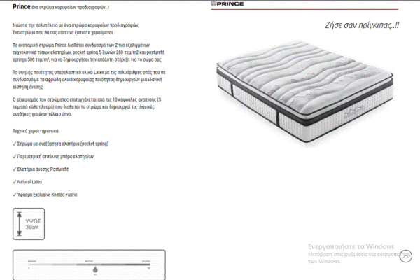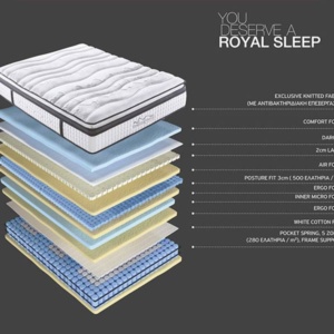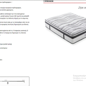 Το ανατομικό στρώμα Prince διαθέτει συνδυασμό των 2 πιο εξελιγμένων τεχνολογικά τύπων ελατηρίων, pocket spring 5 ζωνών 280 τεμ/m2 και posturefit springs 500 τεμ/m², για να δημιουργήσει την απόλυτη στήριξη για το σώμα σας.
